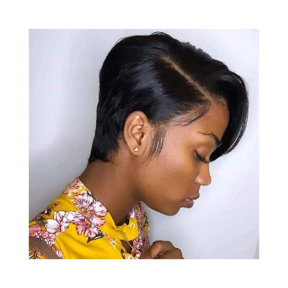 8 Zoll 13*4 Pixie Short Straight Remy Haar Perücke French Lace Base Material Transparente